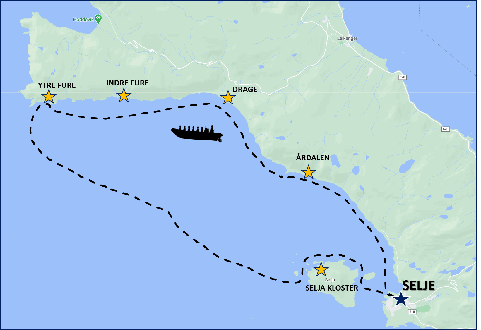 Selje – Årdalen – Drage – Indre Fure – Ytre Fure – Selja Monastery – Selje